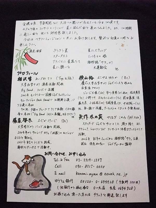 七夕ライブを、豪華メンバーと開催!ぜひご来場下さい★先生の新作絵画もお楽しみに!