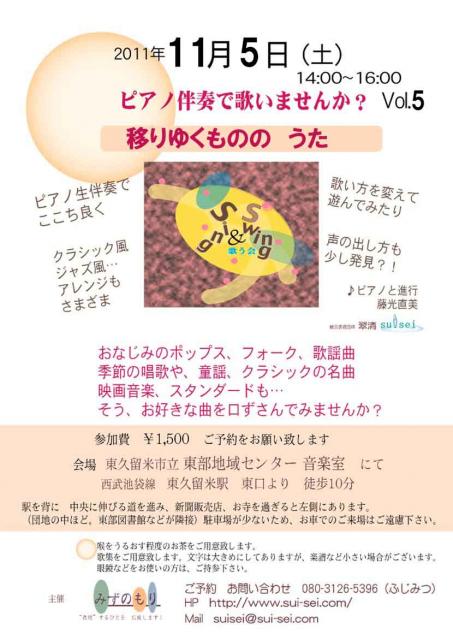 ■2011年4月2日(土)14:00~16:00 東久留米市立 東部地域センター 音楽室にて
