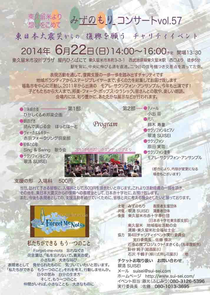 みずのもりチャリティ2014年6月22日(日)14:00~東久留米市役所屋内プラザ