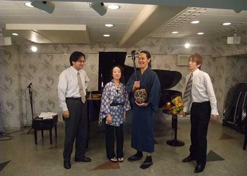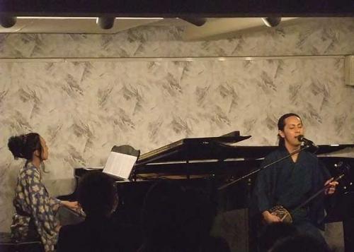 さてさて、ライブの方は、新バージョン蜘蛛の糸を演奏してからは、また盛り上がり系の音楽。蜘蛛の糸は、男の子の三線らしい、スピード感とパワーあふれるナンバー。ご好評いただいていたので、今回にむけて、構成を大きく、さらに三線とピアノのコラボが見えるようにしました♪