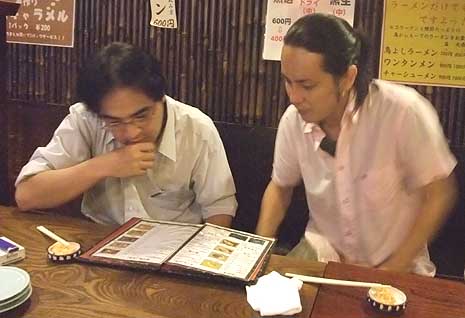 メニューをのぞきこむケンタロウと、事務局さとるくん。いやあ…シンケンなまなざしです!