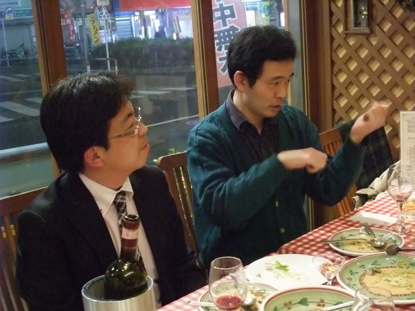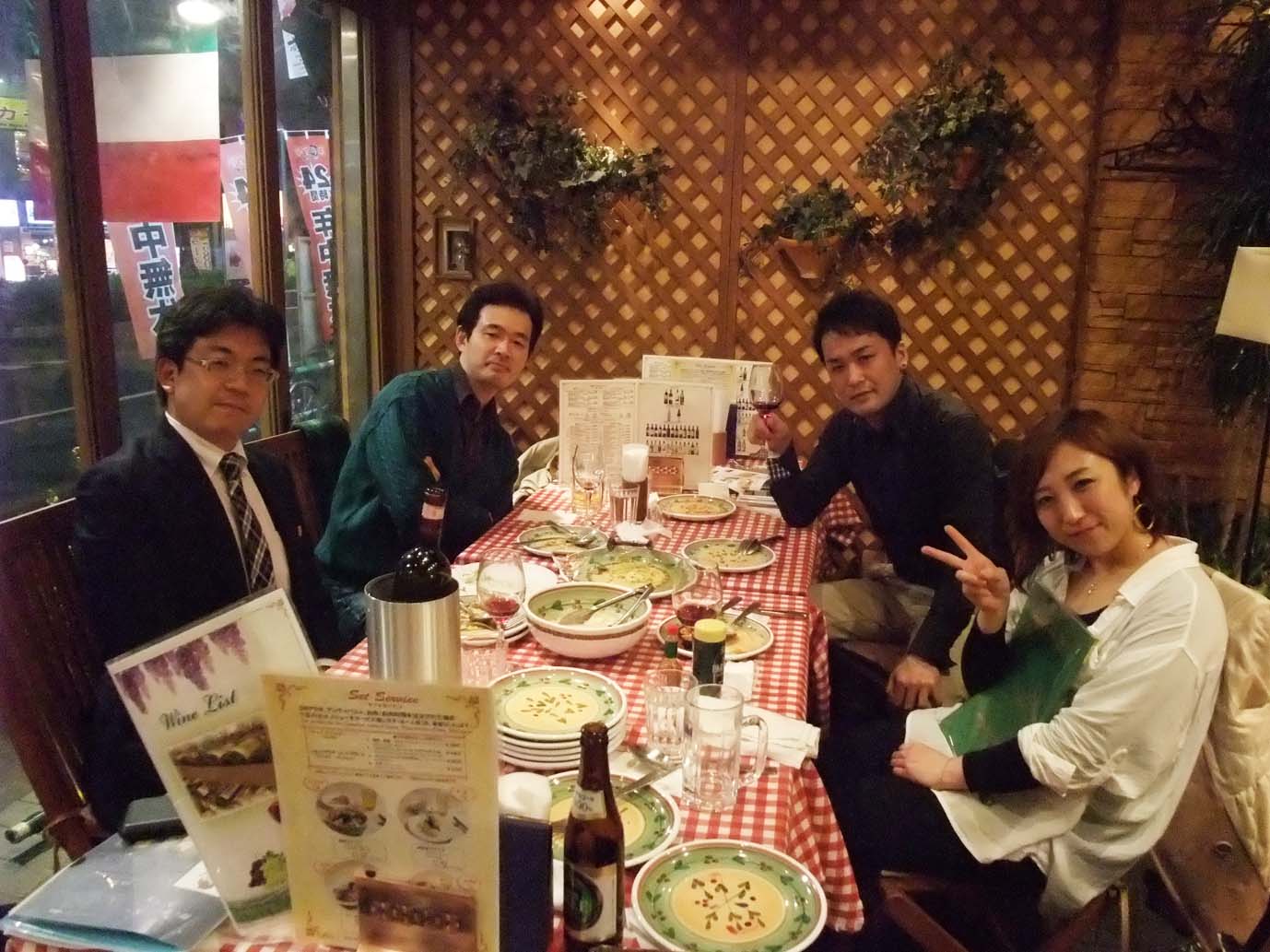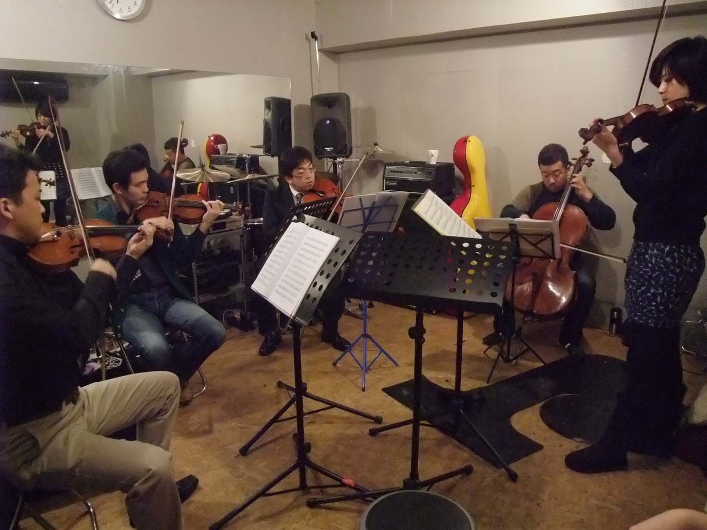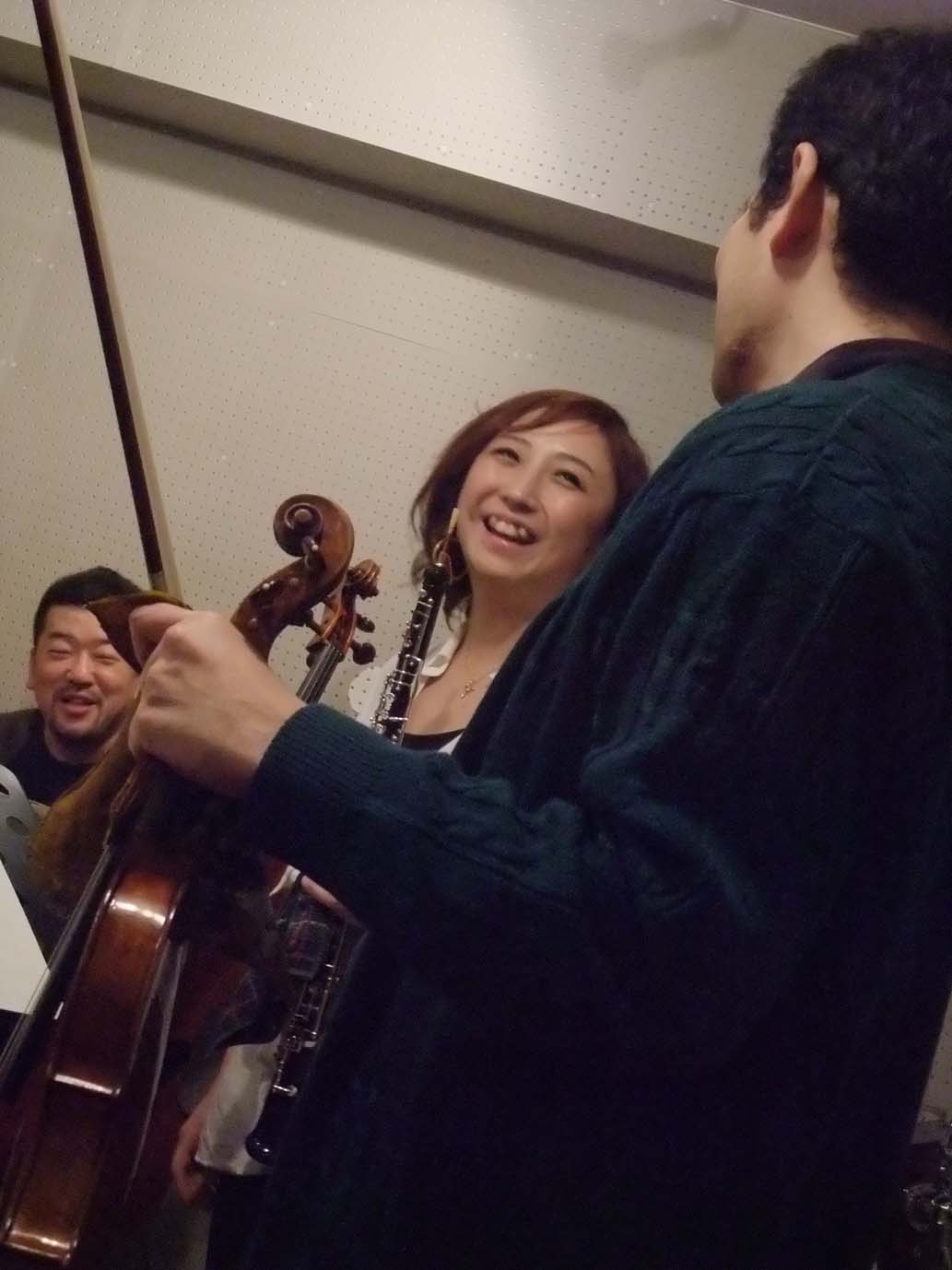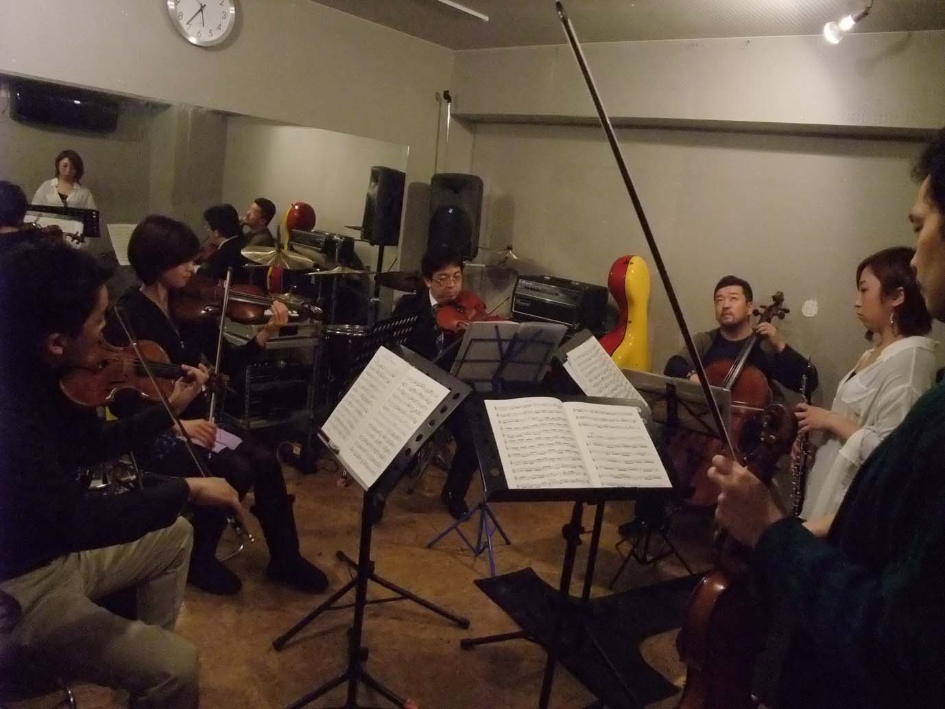 年齢F代の先輩と、D代の若者が、語る語る…飲む食べるの会で、とても楽しかったです!(年代は、音楽関係者さんならわかりますね~。練習の時も同じ。経験豊富な先輩が、一方的にすすめるのではなく、様々なアイディアが、どのプレイヤーさんからもとびだします。ヴァイオリンの山本さんは、「この場でだまっているのはもったいない!」という思いだそうで、いろいろなアプローチを投げかけていました。そんな中、事務局の清水さんだけは満面の笑みで、しずかに見守っている。。素敵な関係でした!