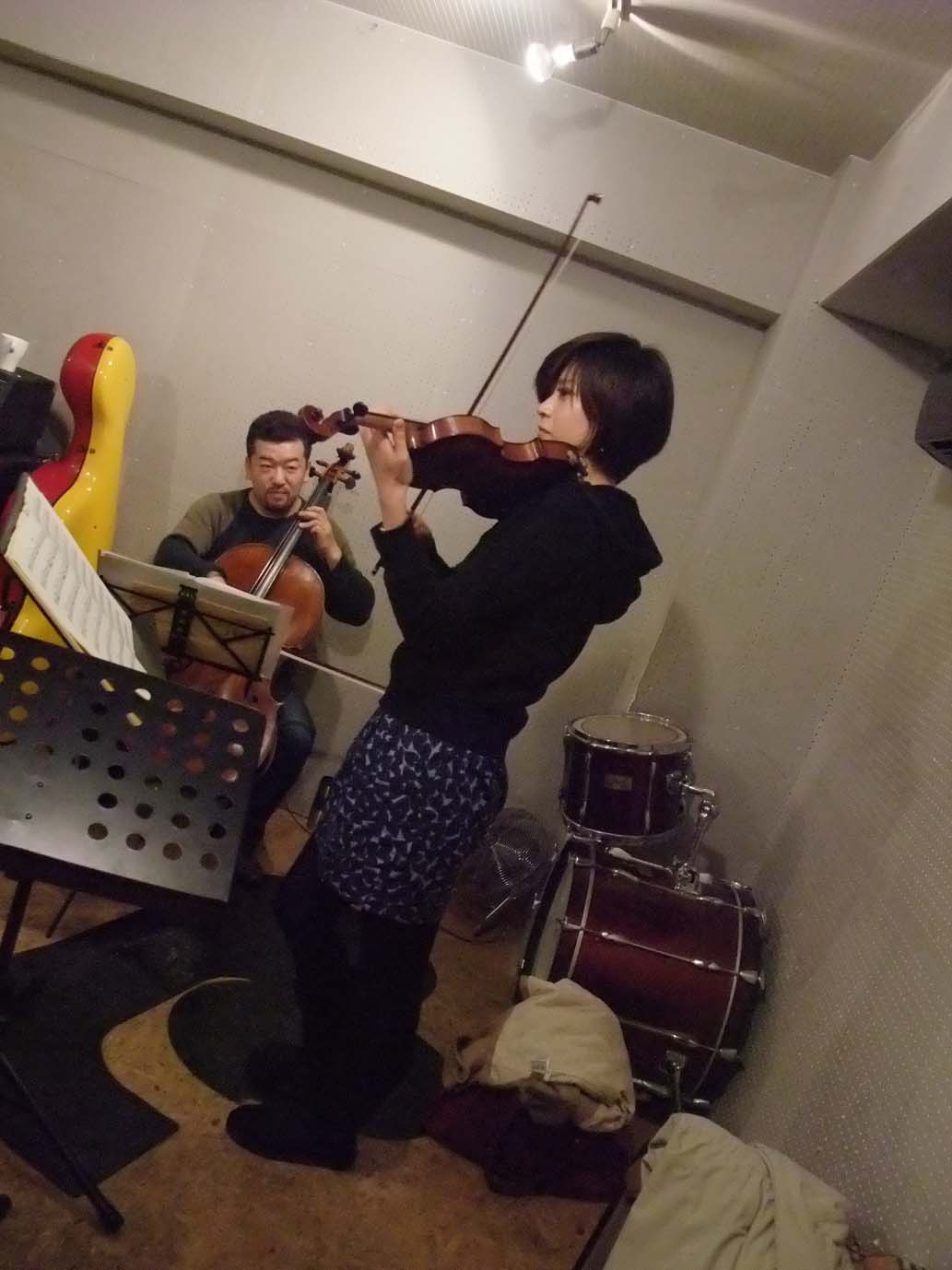 ヴァイオリンソロの松村さんを中心に、練習が進んでいきます。チェロの小川さんは、今回初めて共演されるそうですが、様々なアドヴァイスが、瞬時にとびだしました。