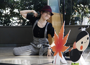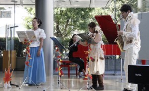 小物もカラフルで、動きのある音楽と共に、美しい舞台をお届けしてまいります。写真は、東久留米市役所のロビーでの公演です。