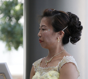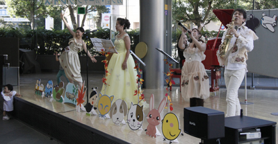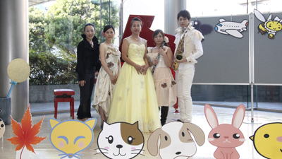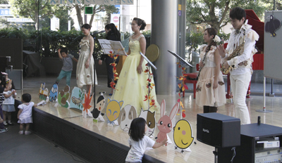 少人数での公演では、お母様や、先生方などに、演出をお手伝い頂く場合がございます。簡単な動きですので、こどもたちとふれあっていただきます。声楽はソプラノの華やかな響きです。
