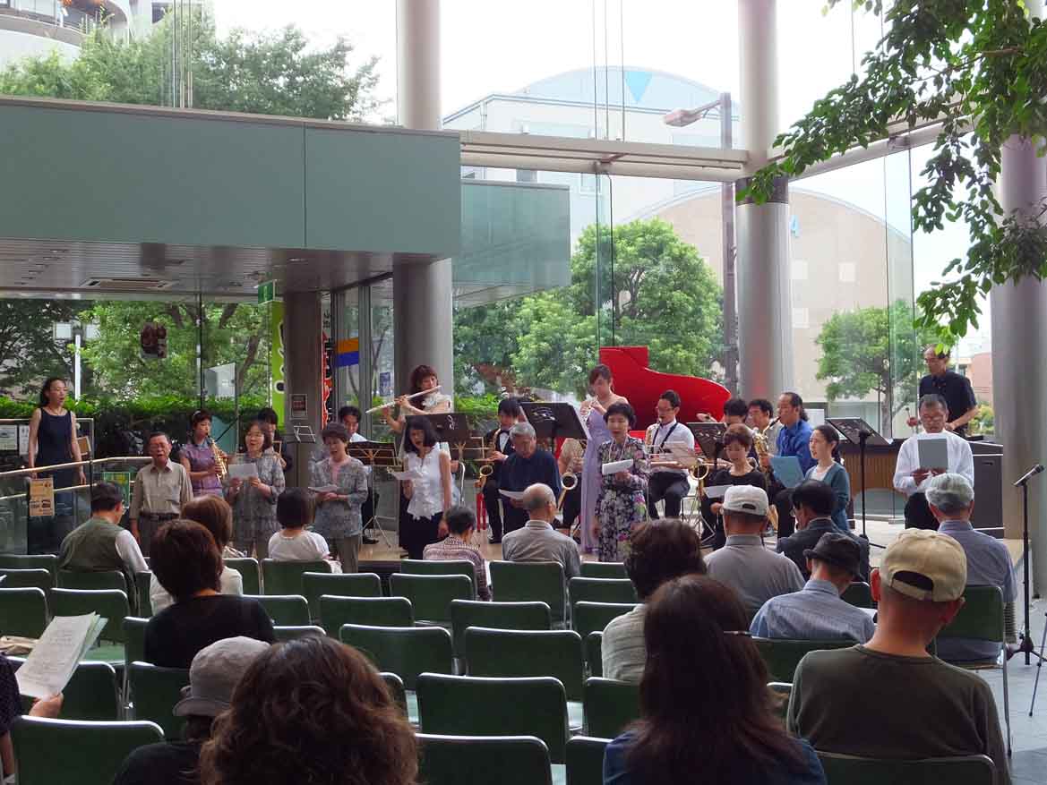 ほとんどの楽器のメンバーが演奏しました。また、団体の代表の方など、ピアノなど重なってしまった楽器の方には歌を。そして、会場の皆様もご一緒に演奏できました。華やかで、厚みのあるサウンド。実は、リハーサルはこの日の開演前に、ほんの数分のみ。音楽を愛する皆様のお力で、ぴったりのサウンドができあがりました!