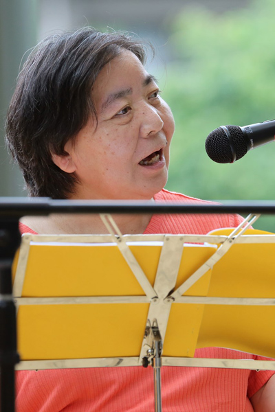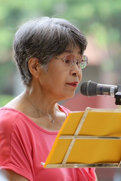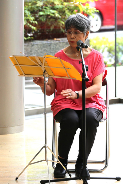 朗読げき、ということで、普段はことばの世界に、身振り手振り、衣装なども加わって、いきいきとした演出をされる皆さんです。15周年の公演では、それにオリジナル替え歌のうたや、踊りもあって、賑やか、パワフルな世界!