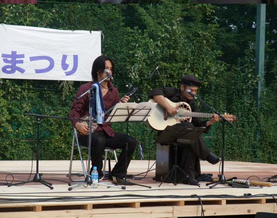 上手側にフリーマーケット。ぐるっととりかこんで、お祭り本部さんや、生協関係さんのテント、出店。10時からはじまり、民族楽器やゴスペル、合唱、太鼓、鼓の演奏、落語などが披露されました。ラストステージが、翠清につづいて、ゆうた&KenKen。そうだその後、大事な抽選会。15時まで楽しいお祭りでした。健康体操なども…。