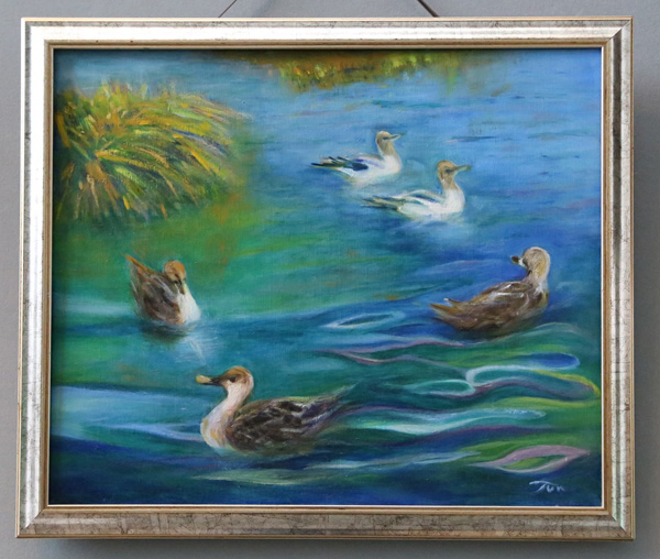 絵画 針谷純子さん 油彩画の作品を展示して下さいました。東久留米市役所でのイベントでは、度々ご協力を頂いております。一枚の絵にこめられたものは、人の手や心を通ってきます。訪れた方々には、そうしたものも伝わるのだと思います。