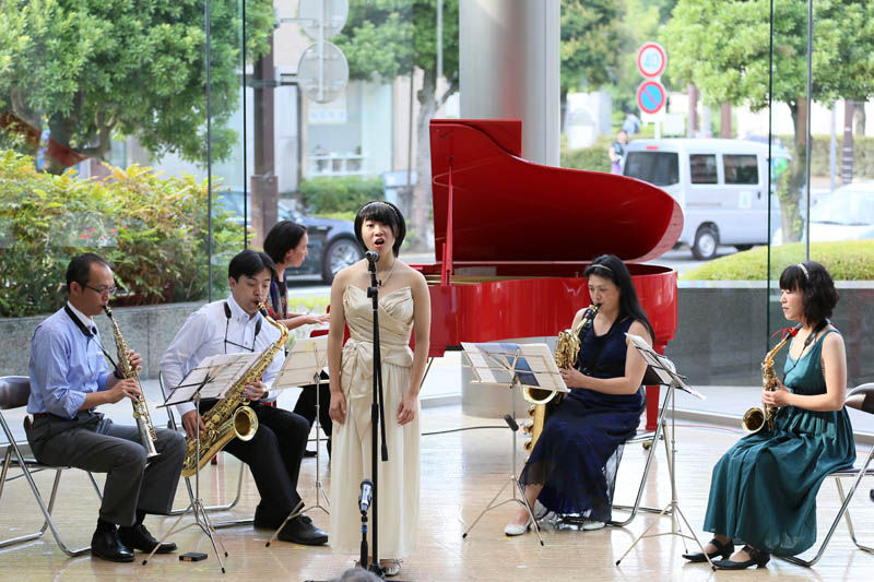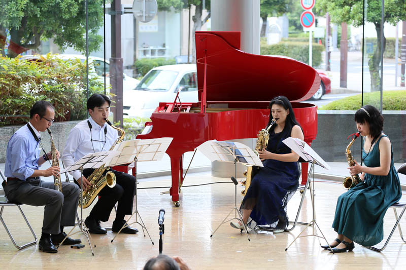 この日の最後に演奏して頂く、モアレ・サクソフォン・アンサンブルの皆さん。福島市を中心に活動されているアンサンブルです。そのよびかけには、福島だけではなく、遠方から、サックスを愛するメンバーが集まって、ラージアンサンブルをつくり上げる、そんな力のある皆さんです。